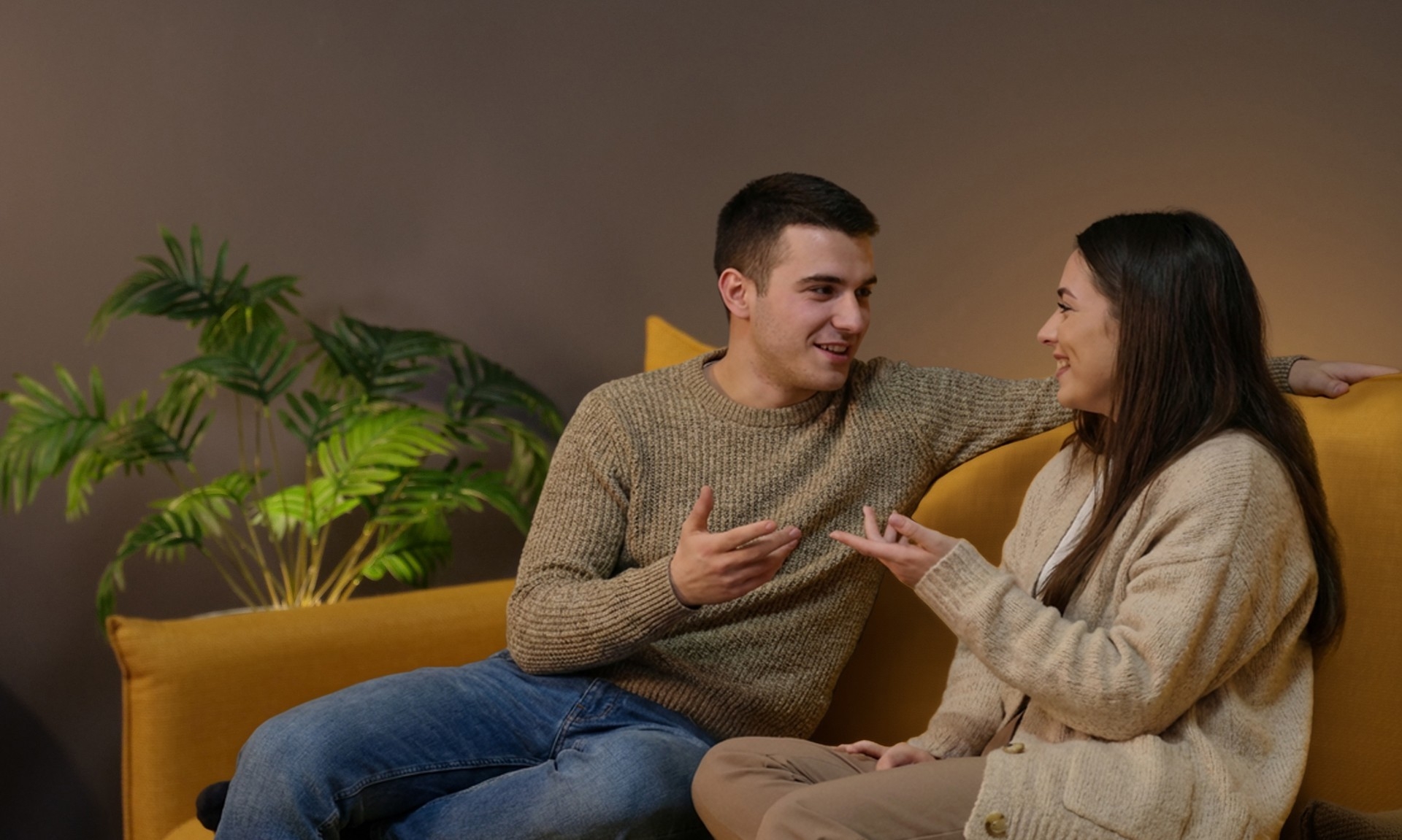 Тёплая, почти домашняя атмосфера: мягкий жёлтый диван, живые растения, декоративные элементы и картины, приглушённый тёплый свет и аккуратные цветовые акценты, которые добавляют глубину кадру и визуальный ритм. Пространство создано так, чтобы в нём было комфортно говорить, слушать и быть собой.